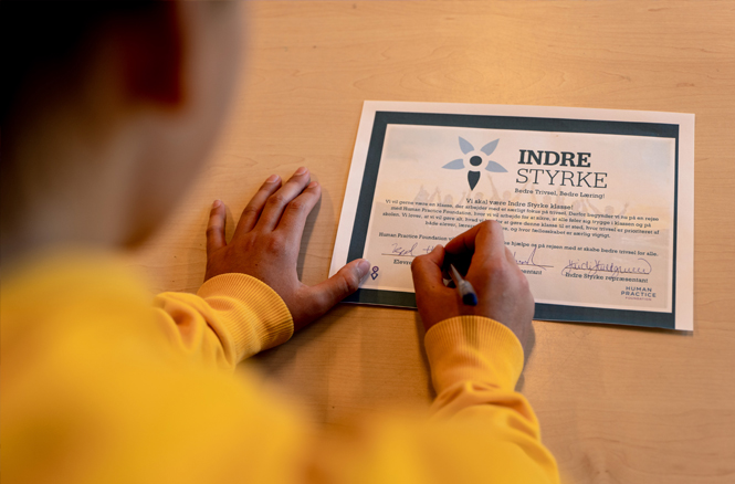 Alle børn og unge ret til en god og tryg skolegang, som giver dem de bedste forudsætninger for at lykkes i livet. Derfor har Human Practice Foundation i samarbejde med eksperter og partnere skabt trivselsprogrammet Indre Styrke, der er målrettet udskolingen i den danske folkeskole med metoder, som styrker børns tro på sig selv samt deres evne til at opbygge og indgå i gode relationer.